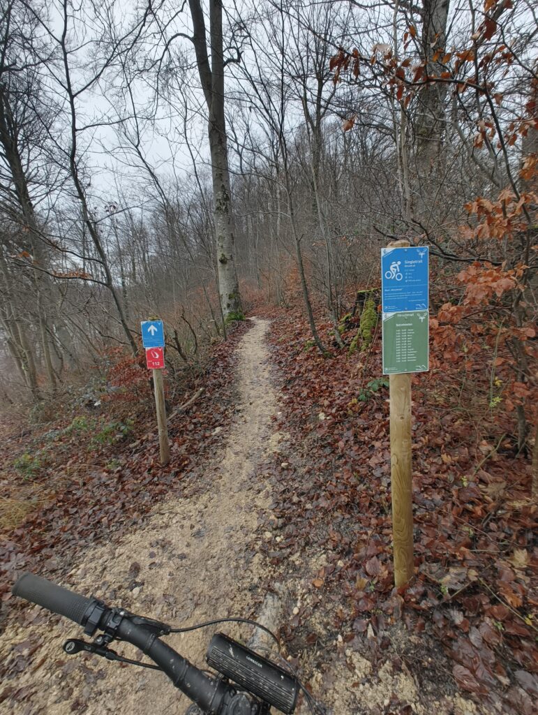 Was die konkreten Trail-Daten angeht, kommen die detaillierteren Infos eher aus der Community: Plattformen wie Komoot und Trailforks führen den Hirschtrail als eher leichten, blauen bis S1-artigen Trail mit drei Sektionen. Addiert man die dort gelisteten Abschnitte, kommt man auf rund 1,69 Kilometer. Beschrieben wird der Trail als anfängerfreundlich, mit flowigem Charakter, kleinen Wellen, schmaleren Passagen und Elementen, die man teilweise mitnehmen kann, aber nicht mitnehmen muss. Genau das macht ihn sympathisch: Er will niemanden beeindrucken, sondern gefahren werden.