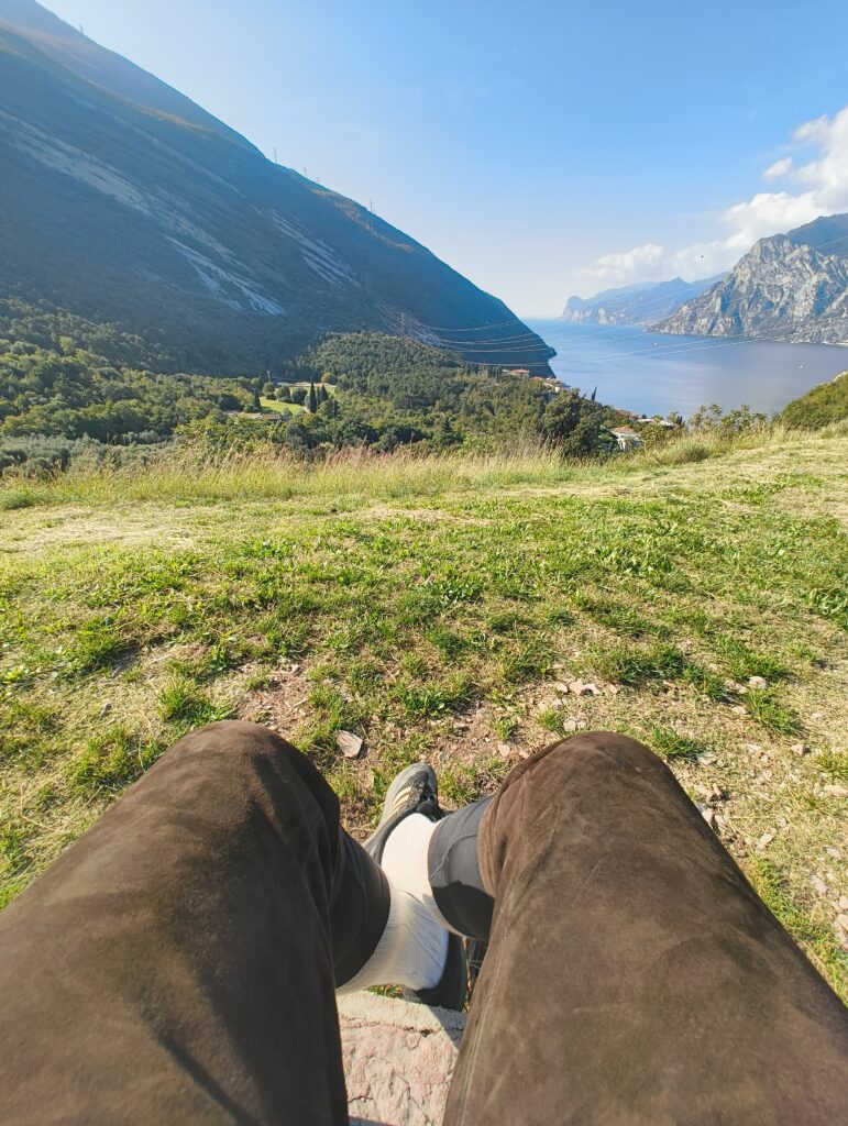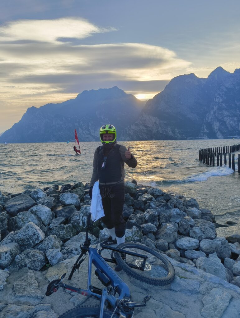 Der Biker – nennen wir ihn einfach jeden von uns, weiß in diesem Moment nicht mehr, ob er noch lebt oder ob die Lunge ihn schon aufgegeben hat. Das ist kein dramatischer Moment. Das ist Realismus. Wer jemals einen 20%-Anstieg bei 35 Grad ohne Wasser gefahren ist, kennt genau diesen Zustand: halb weg, halb da, komplett fertig.